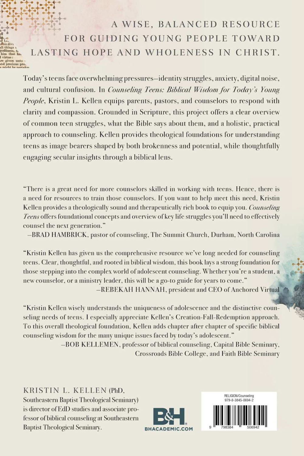 With Scripture as the foundation, this book approaches common struggles that teens face from their unique, contemporary perspective, giving a general overview of the problem, what the Bible has to say about it, then a robust, holistic approach to counseling the young person. It also provides some theological foundations that drive a biblical counseling approach, specifically the Bible’s teaching on who we are as people (specifically teens), the role of sin and brokenness, the place of Scripture to speak to life’s struggles in an authoritative way, and the developmental and cultural realities of today’s teens. Also, like Counseling Women, this book will intentionally consider secular practice, filtering them through Scripture’s teachings but will seek to provide a wise, balanced approach to counsel.